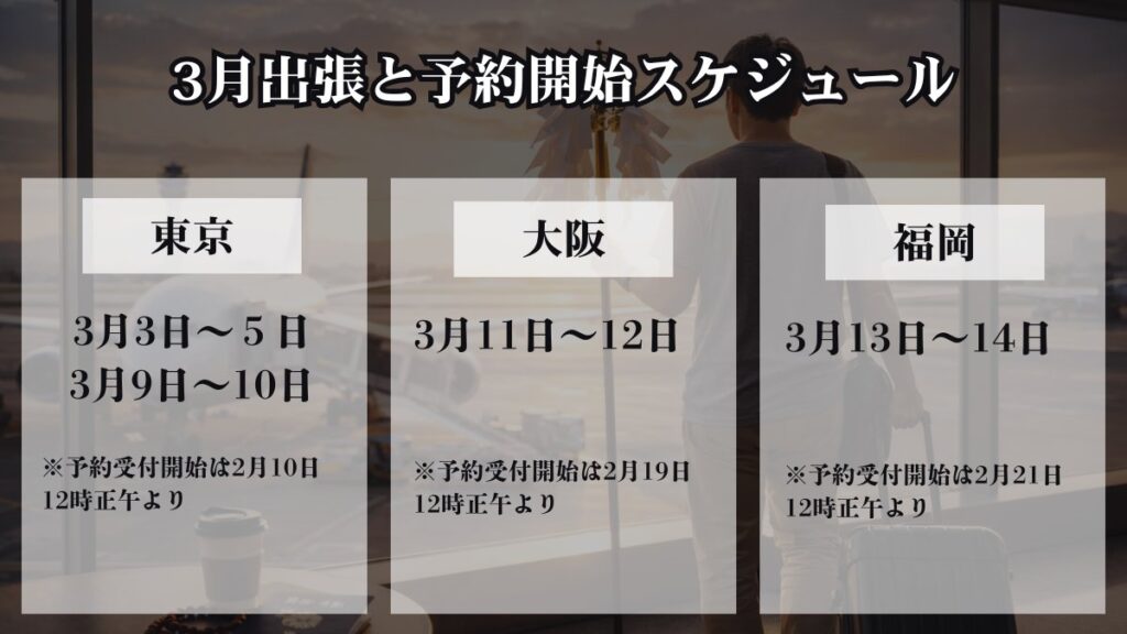 東京・大阪・名古屋出張